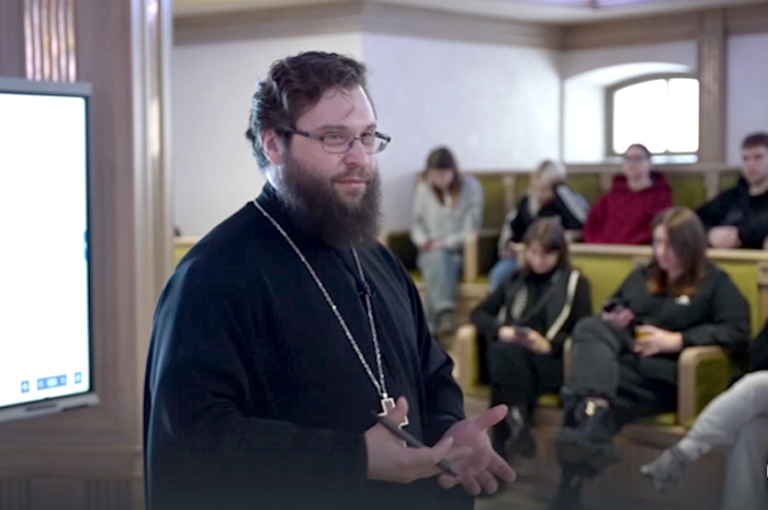 Встреча настоятеля церкви Ризоположения Пресвятой Богородицы в Леонове Андреем Рахновским с учащимися школ Дзержинска.
