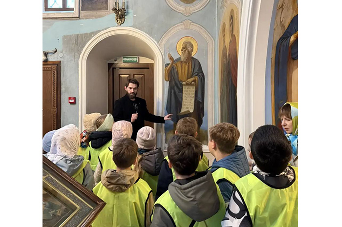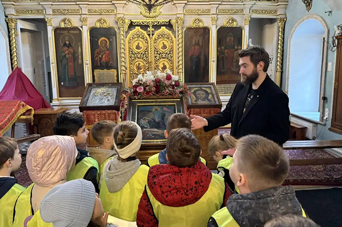 Во время экскурсии, которую провел директор воскресной школы прихода Сергеев Сергей Евгеньевич, ребята узнали о смысле и традициях Пасхи, почитаемых святынях и иконах храма, его небесных заступниках.