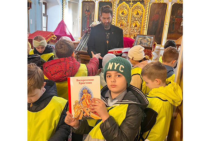 В подарок детям были вручены книги о Воскресении Христовом, предоставленные издательством «Никея» на благотворительной основе в целях поддержки образовательного проекта Северо-Восточного викариатства «Пасхальная радость». Красочные книги дети сразу же стали изучать и обсуждать.