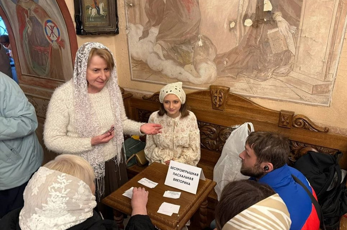 В Великую Субботу приходской подростковый клуб храма Положения Ризы Пресвятой Богородицы во Влахерне, в Леонове провёл миссионерскую викторину для жителей района, пришедших освятить пасхальные яства.
